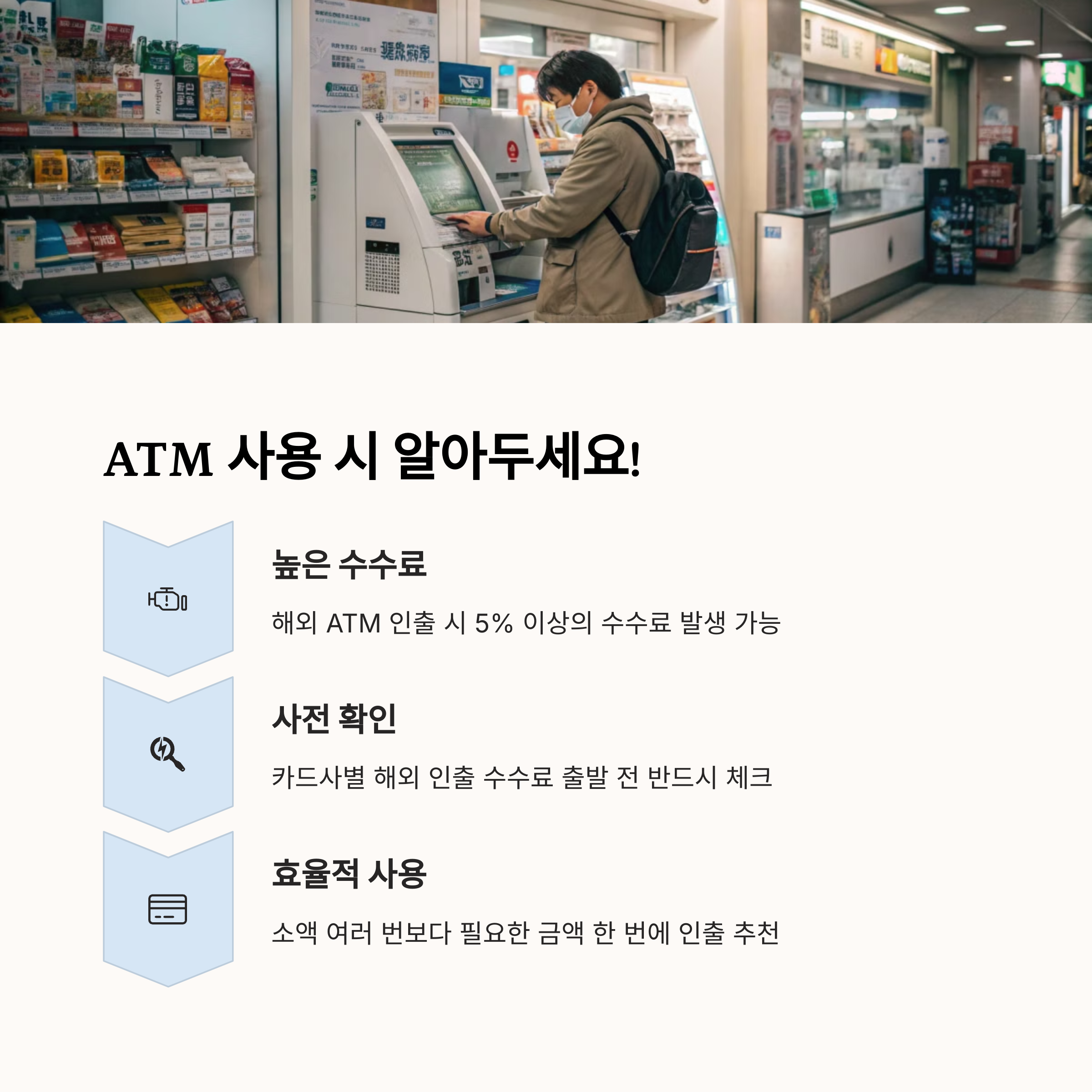 특히 여행 중 필요에 따라 Seven Bank ATM을 활용하면 비상금 조달에도 유용합니다.